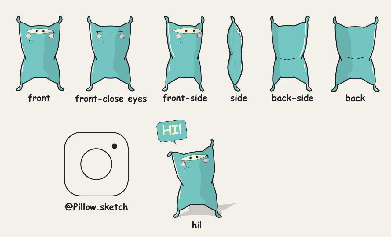 "Pillow" character design for project on Instagram : @Pillow.sketch